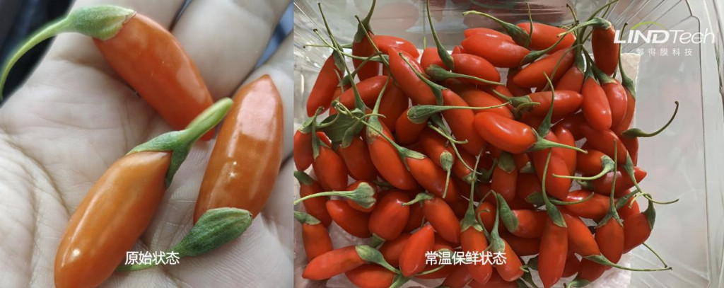 說起研發(fā)歷程,王玉蘭對鮮枸杞的保鮮攻關記憶深刻。“最難做的是寧夏鮮枸杞,‘神仙不碰鮮’的說法不是沒道理。”鮮枸杞營養(yǎng)豐富,但極其嬌嫩,采摘運輸中稍有不慎就會碰傷,進而快速氧化變質(zhì)。而且,鮮枸杞呼吸強度大,腐敗速度快,微生物、濕度、光照等環(huán)境因素也會影響保鮮效果。傳統(tǒng)冷鏈運輸若48小時內(nèi)未送達,就可能出現(xiàn)變質(zhì)。王玉蘭在枸杞田里扎根6年做實驗,最終成功實現(xiàn)鮮枸杞的常溫保鮮,將其在37℃儲存溫度下的大氣存放時間,從0.8天延長到了3天。